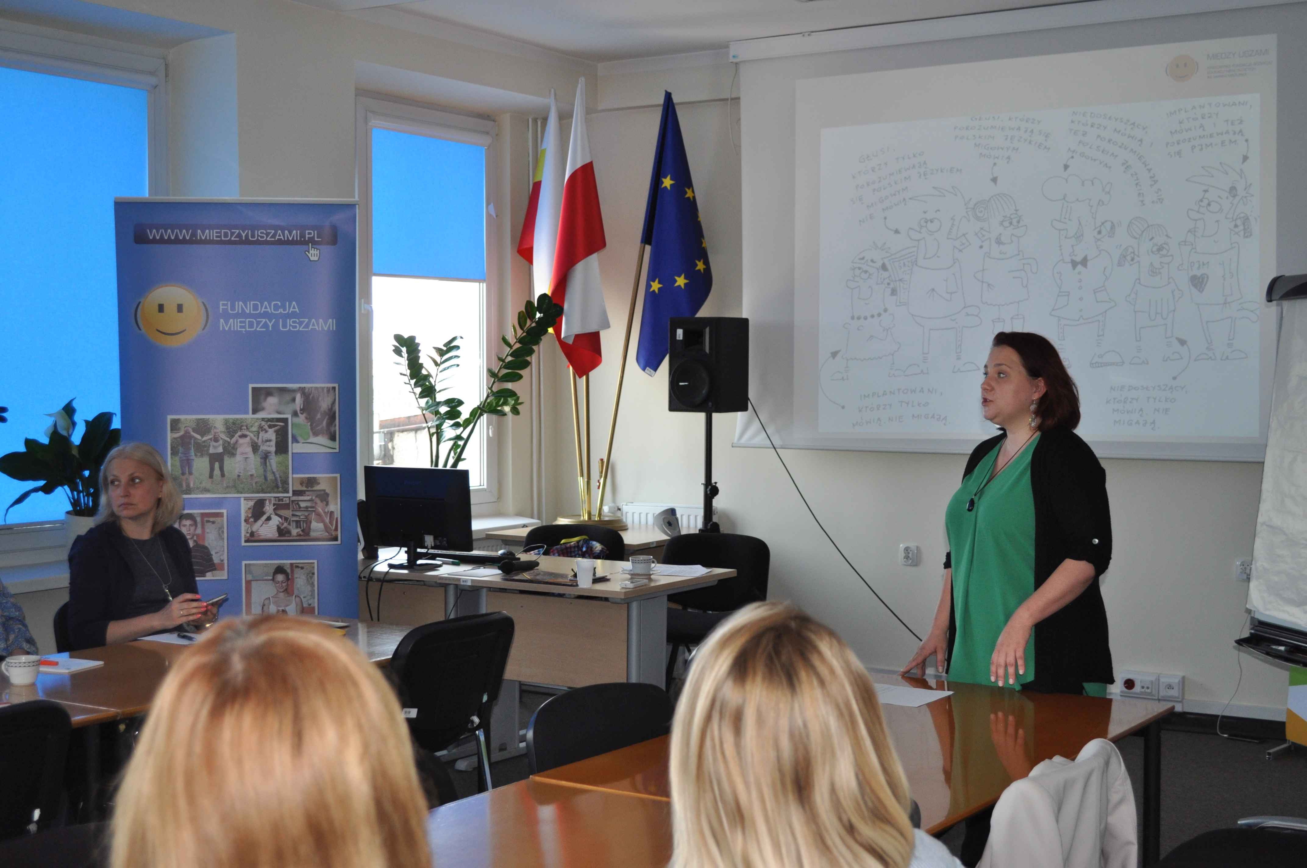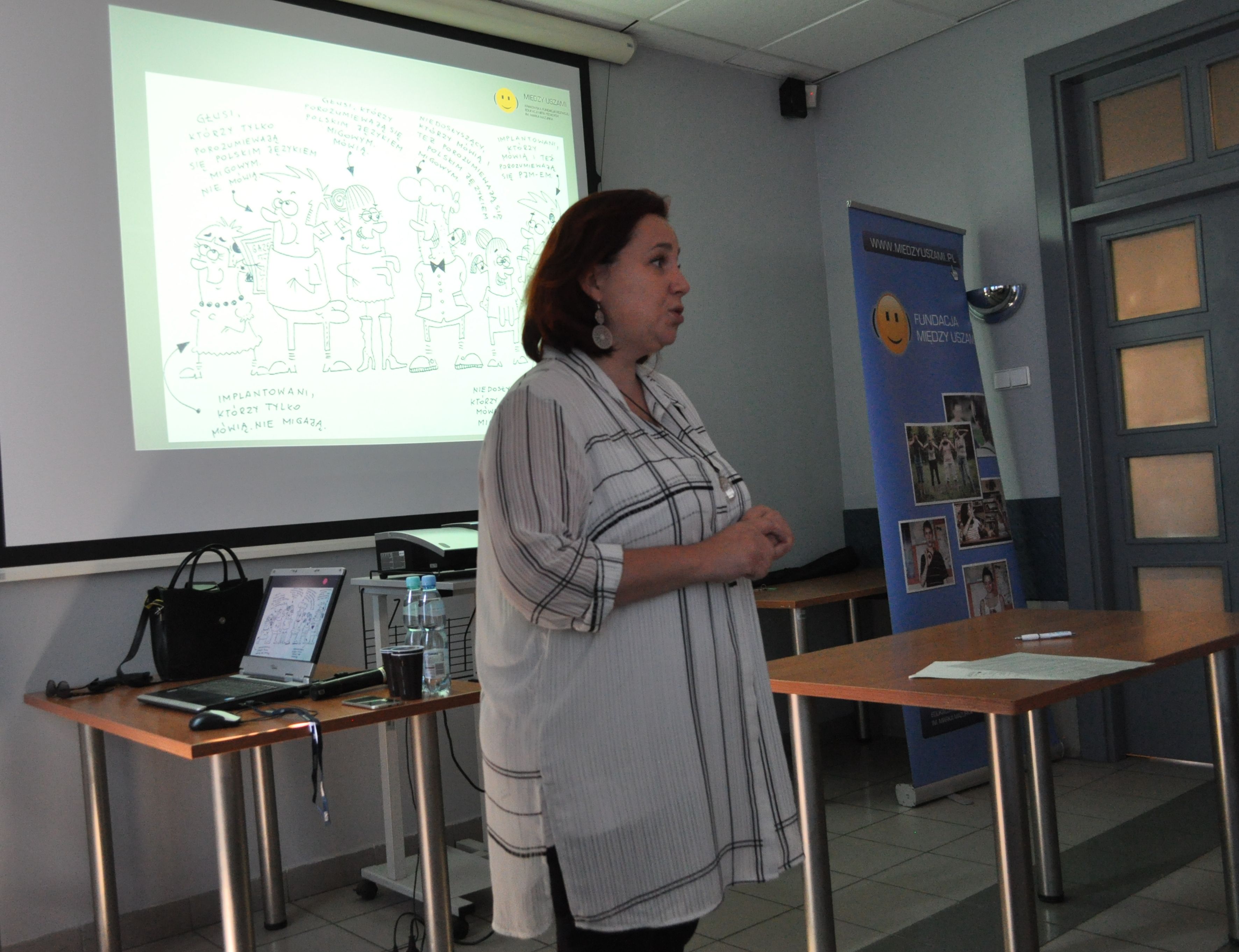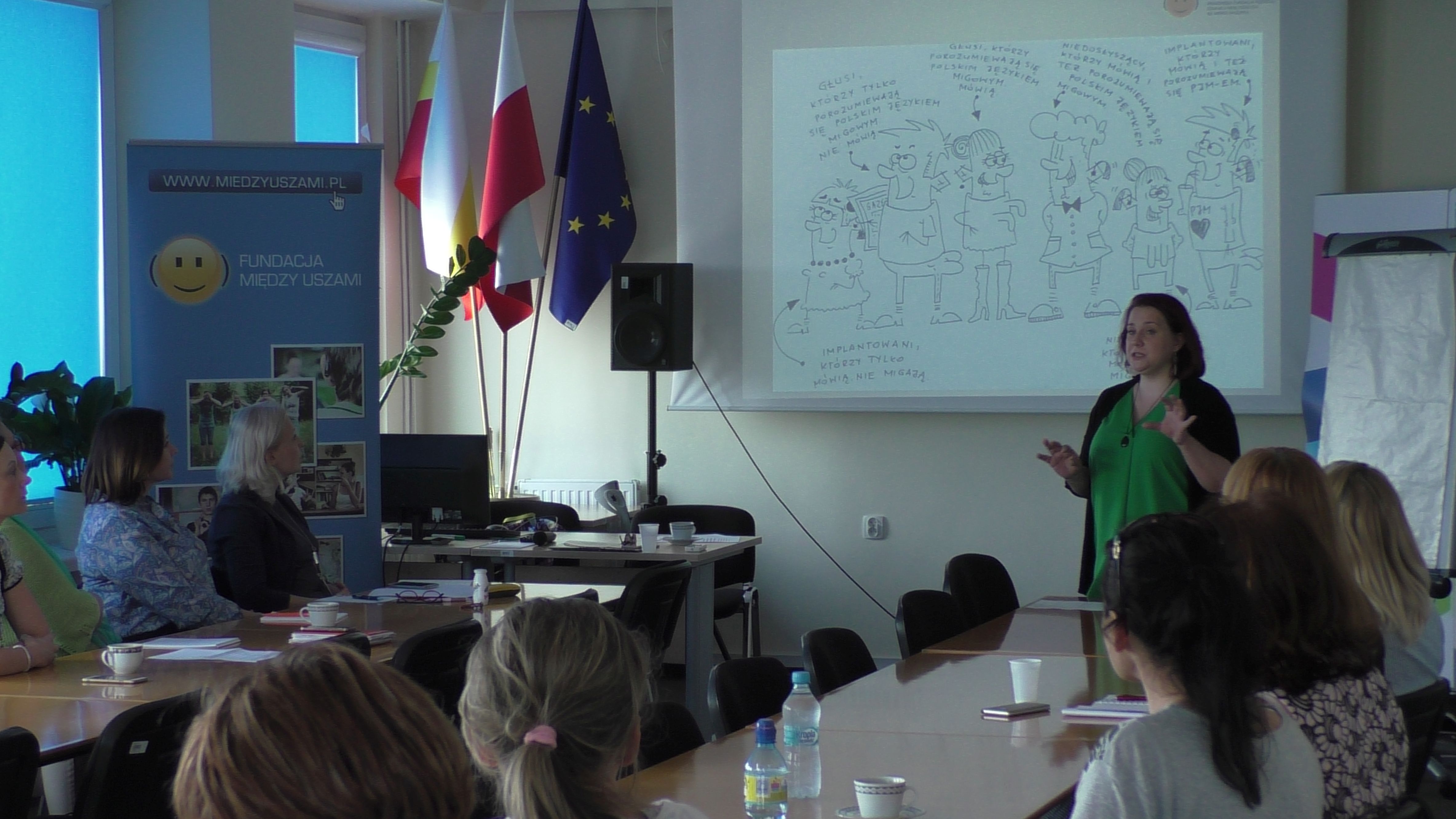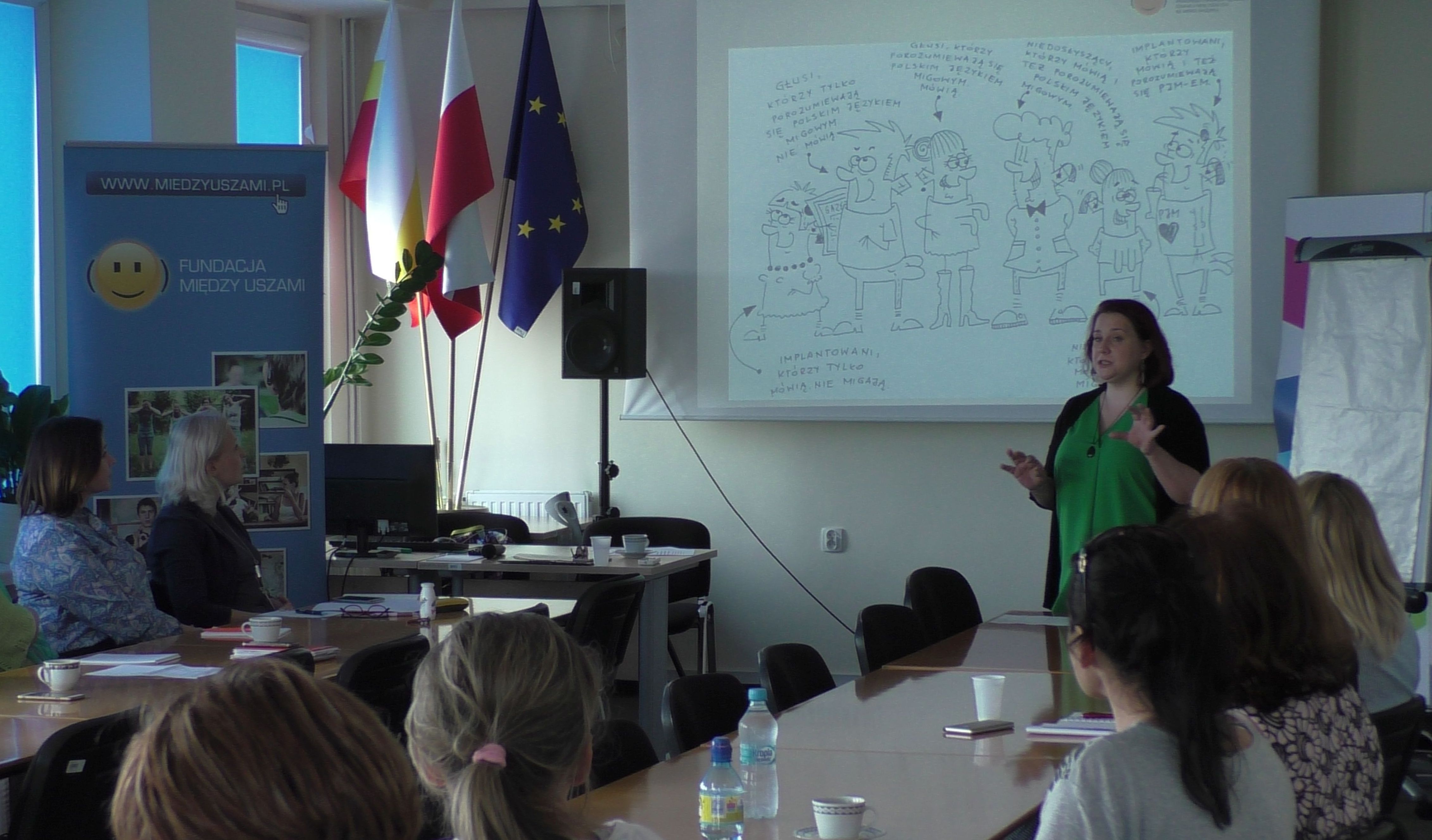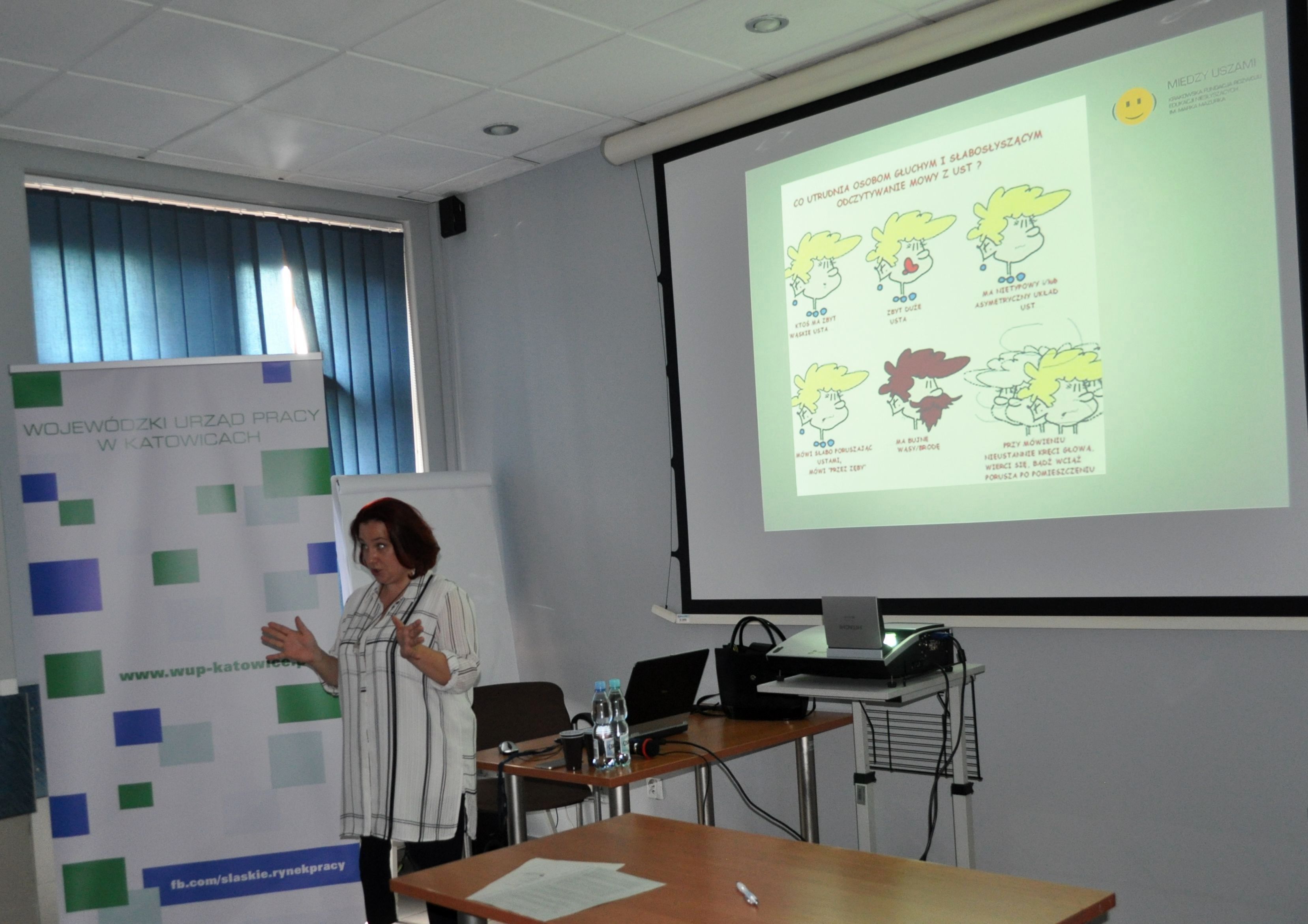 Jednym z ważnych elementów projektu „Głucha Mama na rynku pracy” było przeprowadzenie szkoleń dla pracowników WUP Kraków i Katowice na temat kontaktu z osobami głuchymi i specyfiki głuchoty. Szkolenie „Obsługa klienta niesłyszącego” poprowadziła Magdalena Sipowicz, trenerka, dyplomowany tłumacz Polskiego Języka Migowego, członek Rady Fundacji Między Uszami. Pracownicy WUP obecni na szkoleniach z dużym zaciekawianiem poznali mało znane lub zupełnie nieznane fakty o głuchych, ich języku, ich wizji świata i prostych sposobach komunikacji z nimi. Na koniec każdego ze szkoleń wywiązała się ciekawa dyskusja. Jesteśmy przekonani, że zmieniliśmy nieco mit o barierze z komunikacji między Światem Dźwięków a Światem Ciszy.